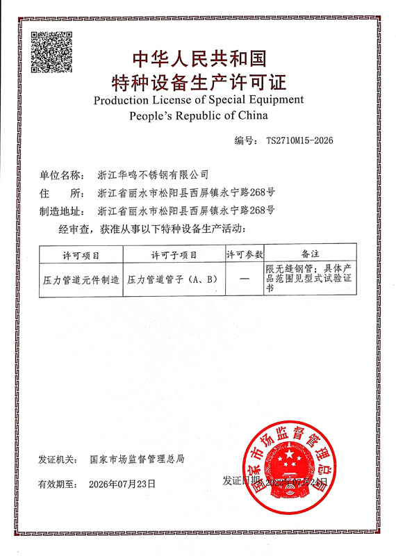 浙江華鳴不銹鋼有限公司公司位于麗水市松陽縣工業園區-不銹鋼基地內,龍麗高速公路穿境而過,交通便捷。成立于2007年,年產能力8000噸,是專業生產不銹鋼管的企業。